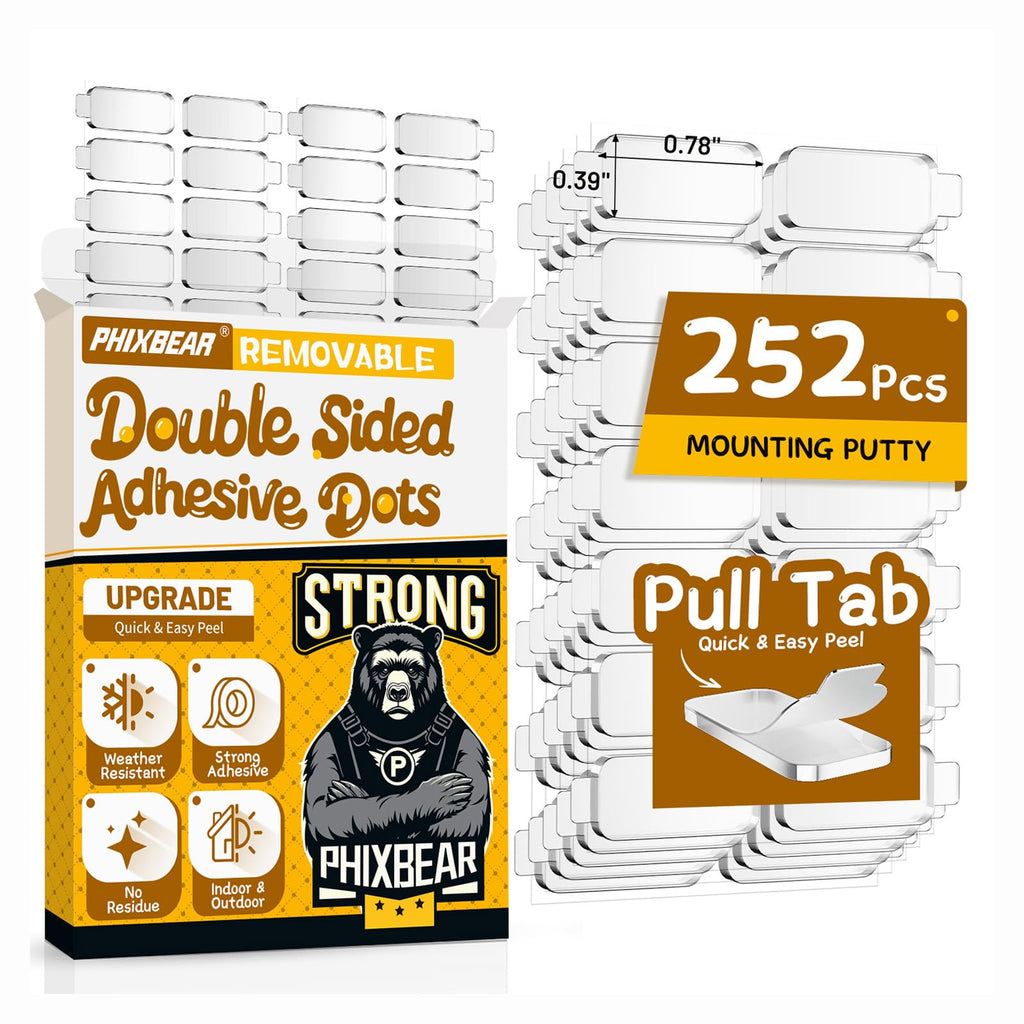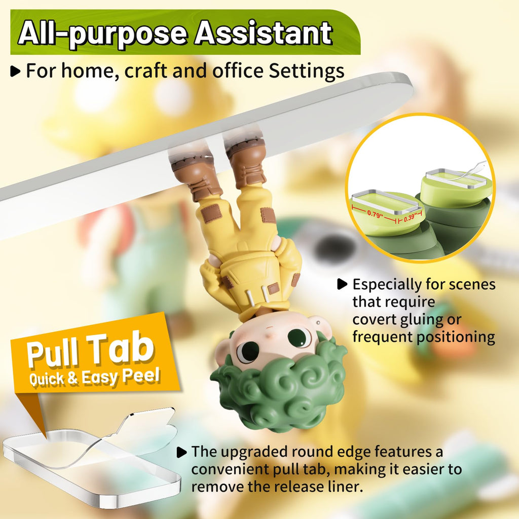 - šš£šØš©šš£š© šš¤š”š & šš©š§š¤š£š šš©ššš šš£ššØšØ: Our upgraded clear removable double sided tape adhesive dots with Pull Tab, Gently pull the tab to peel off the protective film. They are crystal clear, with industrial strength adhesive on both sides, super strong adhesion, instant hold, action figures keep standing and anti fall , provides a quick and easy adhesive solution. Compatible with most light to middleweight requirements, and can be stacked to enhance viscosity.