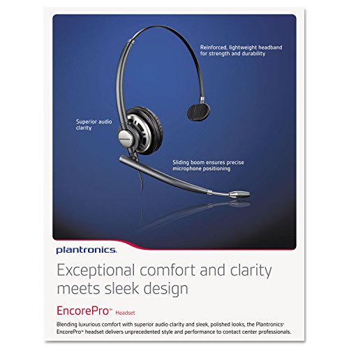 Details: Anything else is just a headset reward your top performers with Our top-of-the-line Plantronics Encore 700 headset Series, designed for customer service representatives. Its distinctive design is slim and stylish with an elegant satin finish. Its featherweight materials and leatherette ear pads ensure luxurious comfort, while its unique curved, telescoping microphone and pivoting boom deliver crystal-clear, private conversations. The Encore 700 Series – the thoroughbred of headsets. luxurious comfort. Distinctive design. elegant, satin finish and slim, stylish design make anyone proud to wear it conveniently situated microphone arm stays clear of wearer’s peripheral vision premium nylon composite materials provide an ultra light weight design soft and comfortable leatherette ear pads adjustable fit enhances all-day wearing comfort, ensuring that representatives stay fresh and engaged quick disconnect feature provides walkaway convenience and compatibility with all Plantronics USB and desk phone audio processors and with direct connect cables exceptional audio unique, extendable boom ensures precise positioning, enables optimal noise cancelation, and means customers hear every word wideband audio delivers richer, clearer conversations, and reduces listening fatigue sound guard technology protects hearing against sounds above 118 dB along term reliability designed for the rigors of call-intensive s, minimizing operational disruptions and costly downtime reinforced, lightweight headband provides strength and durability slim, supple, but extremely durable cables