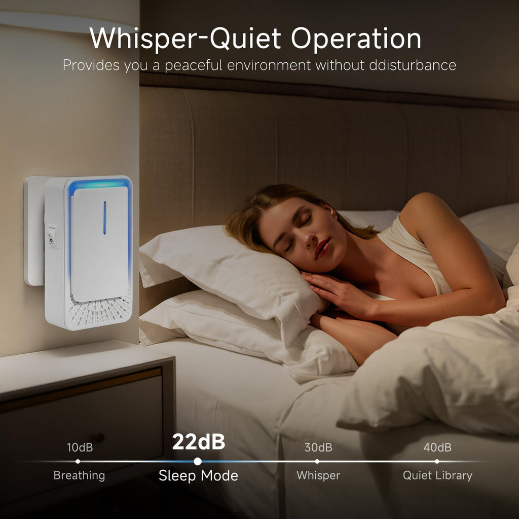 - Quiet Operation:Our plug in air purifier operates 24/7 without noise disturbance, making it ideal for indoor space,even quiet spaces like bedroom or office. You can enjoy fresh air and fall asleep easily
