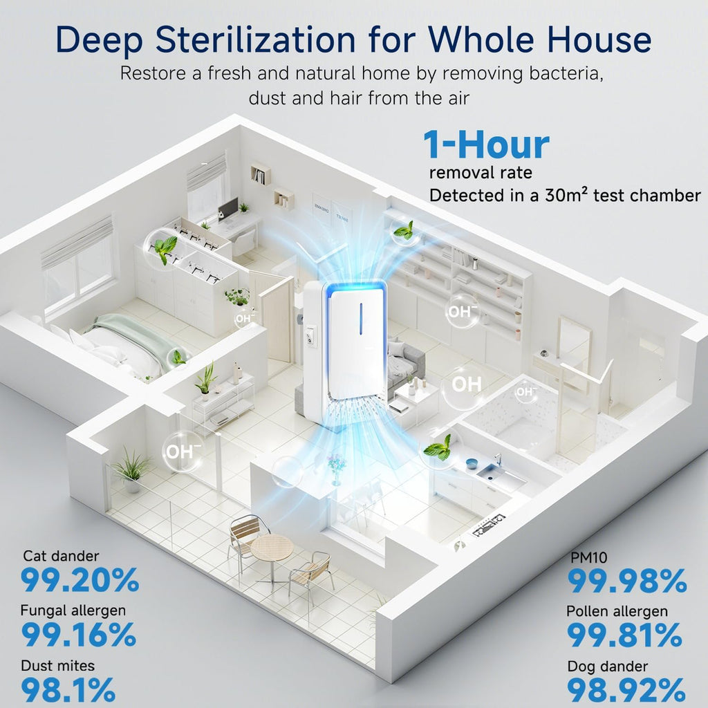 - Filter-Free Operation: No costly filter replacements required. The sustainable, filterless design saves you time, offering a low-maintenance solution for daily air purification