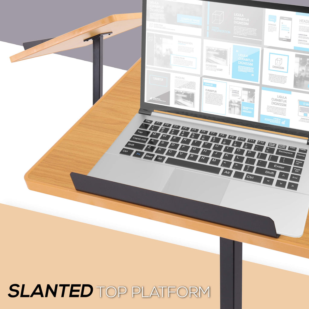 - SLANTED TOP PLATFORM: The podium stand features slanted top platform w/ edge stopper allowing safe placement of electronic devices and appliances such as laptop, monitor or projector and to keep pens, teaching tools, notes, books and reports in place