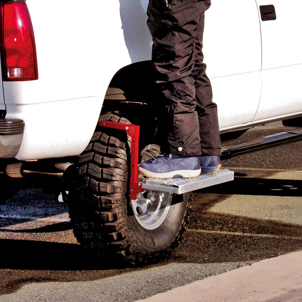 - EASY TO USE: Slip this Heavy-Duty Truck Step over your vehicle tire, then reach your roof rack, engine bay, truck box, lumber rack, luggage, and bike without overreaching