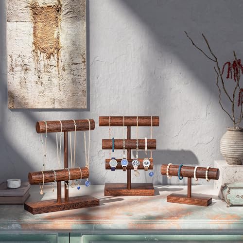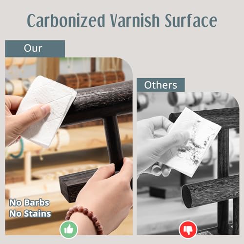 - Sturdy Construction - The bottom wooden base ensures durability, lightweight but sturdy, have no issues with it’s falling over while providing ample space to neatly organize and display bracelets, watches, bangles, scrunchies, and necklaces