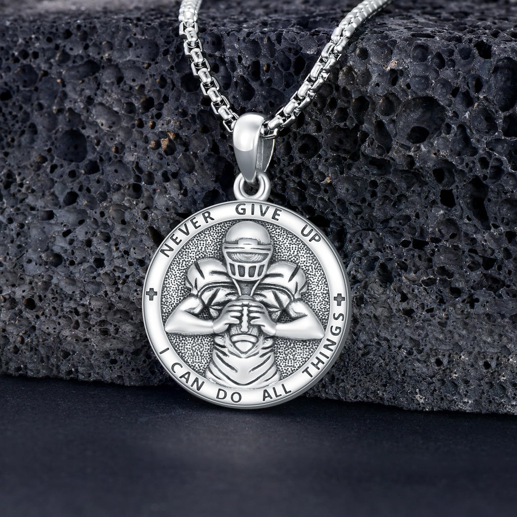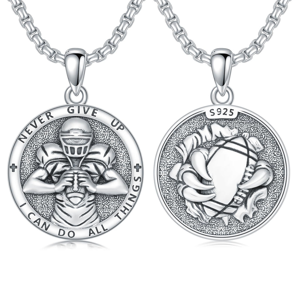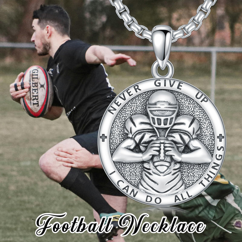 - Inspirational Gifts : The main body of the football pendant necklace is a round medal with oxidation. The front of the necklace means the love for football and is engraved with the words "NEVER GIVE UP I CAN DO ALL THINGS." The back is the passion for football, inspiring everyone to actively pursue their dreams. Focus on the goal.