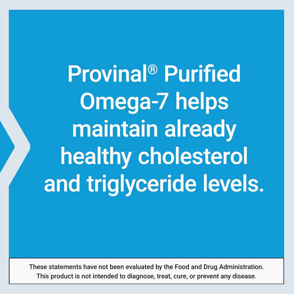 - STUDIES SHOW QUICK RESULTS - Provinal Purified Omega-7 contains 210 mg of omega-7 palmitoleic acid to help maintain already-healthy cholesterol and triglycerides levels. It also promotes a healthy inflammatory response and healthy glucose metabolism. In fact, studies show a daily dose of 210 mg can offer the support you're looking for in as little as a month.