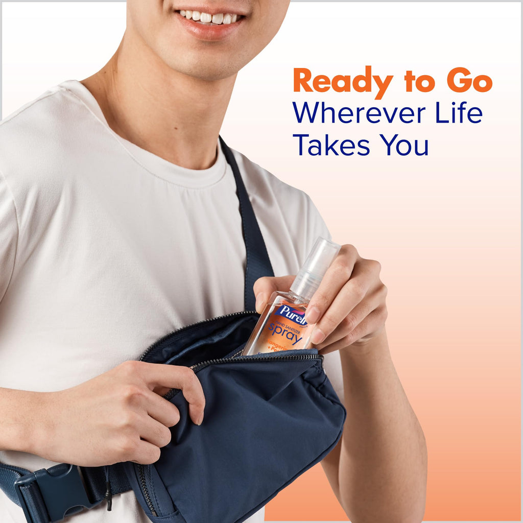 - Case includes: PURELL Hand Sanitizer Spray, Tangerine Pear scent, 2 fl oz Spray Bottles. Note: Prime, spray, and go - you might need to press the pump repeatedly for 15-30 seconds before first use