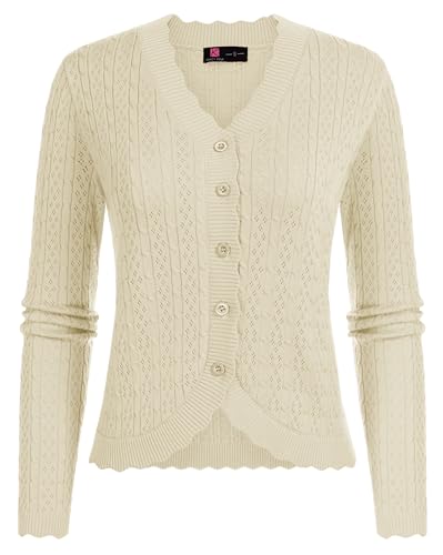 - 【Features】 This delicate crochet cropped cardigan sweater features an elegant hollow texture, button placket, long sleeves, V-neck, cute scallop hemline, ribbed collar cuffs and hem. The long Sleeve Bolero Shrug Sweater is light, highly elastic, and resistant to deformation.