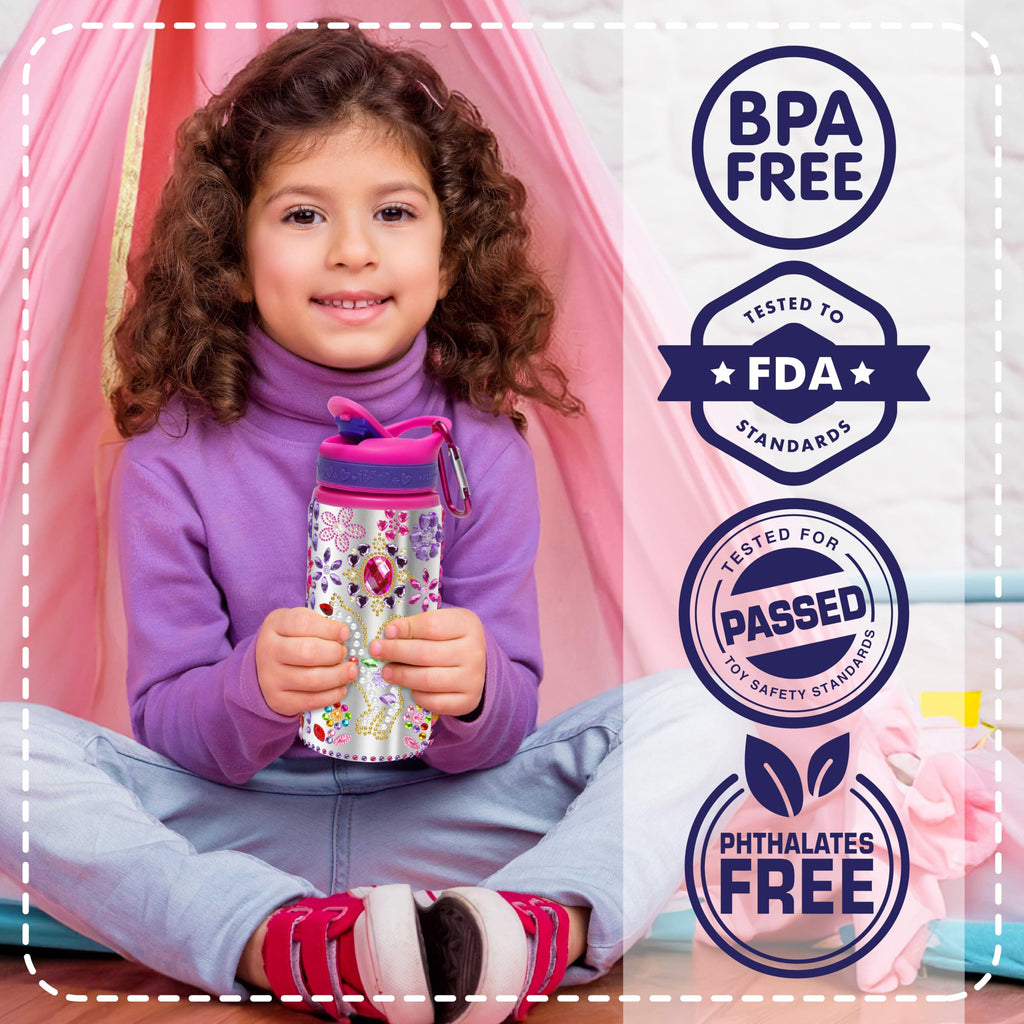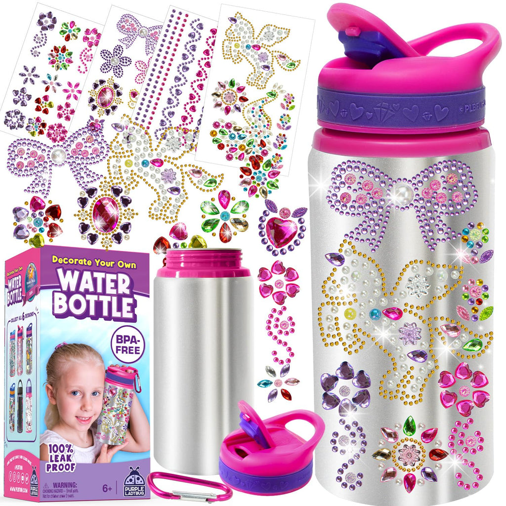- SUPER FUN ARTS AND CRAFTS FOR KIDS! Kids love decorating their own bottle with this kids’ water bottle craft kit! It comes with 4 sheets of our sparkly rhinestone glitter gemstone stickers including unicorn design - giving kids hundreds of our sparkly glitter gem stickers to bling out their bottle! Plus, we include a carabiner to hang the bottle.