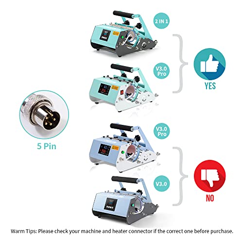 - WARM TIPS: The 5 Pin connector 40 OZ tumbler press attachment just suitable for our PYD Life 2 IN 1 tumbler press machine and V3.0 Pro Max Mint Green touch screen tumbler press machine.Please check your machine and heater connector if same as the picture shows before purchase.It cannot work with our Blue V3.0 or V2.0 tumbler press machine.