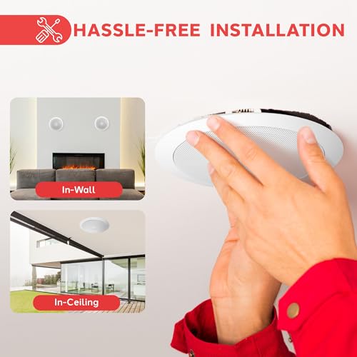 - 2-WAY MOUNT SPEAKER: The pair of 6.5” stereo sound speaker has two way of installation: in-wall or in-ceiling flush mount. It has convenient speaker terminals that allow for quick and hassle-free speaker wire connection at any custom installations