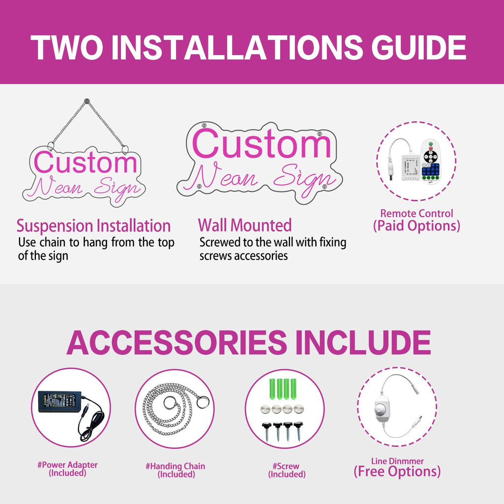 - 【Custom Neon Sign】You can customize your name, design image logo, texts, wedding party backdrop and choose your favorite font, color for your neon sign,which can make your custom neon light signs to be fantastic and unique. Even patterns can be easily customized.