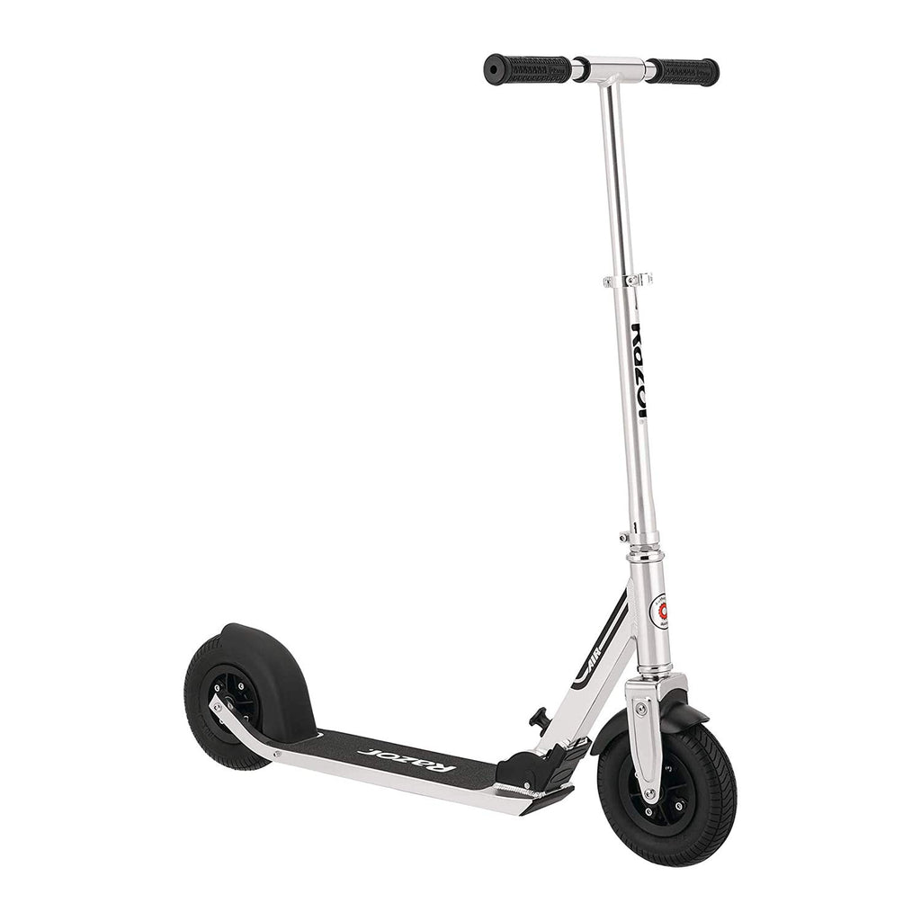 Details: The A5 Air is built Razor tough for everyday commuting on rough, urban terrain. With adjustable-height handlebars, an extra-long deck, 8” (200 mm), super-strong, shock-absorbing, pneumatic tires, this scooter is designed to tackle the toughest commutes. Our patent-pending, anti-rattle handlebars and folding system ensure that the A5 Air is the smoothest and most comfortable ride around. And, with a sturdy, easy-fold, aluminum frame, the A5 Air is designed to last. Whether you’re riding to work or running errands, the A5 Air’s got your back, so go ahead – kick start your commute!