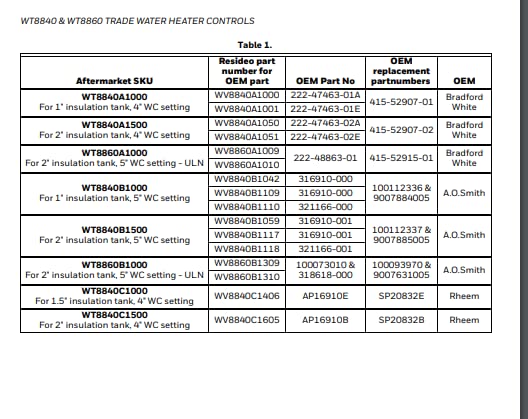 Details: The Wt8840 Series Is The Water Heater Control For Trade Use to replace WV8840 valves on AO Smith water Heaters. It Is Designed For Use In Standing Pilot Applications Using An Immersion Well For Water Temperature Sensing. Made in United States. Manufactured by Honeywell.