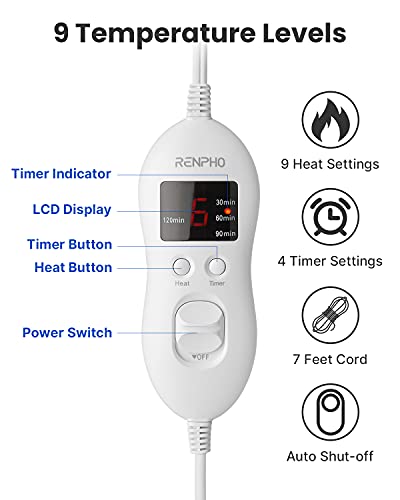 - 9 Heat Settings & 4 Auto-off Timers. The physical therapy fsa heating pad for neck and shoulders and back with auto shut off features 9 heat levels that allows you to choose the temperature that is right for you, and 4 timer options (30/60/90/120mins) that customize your relaxing experience.