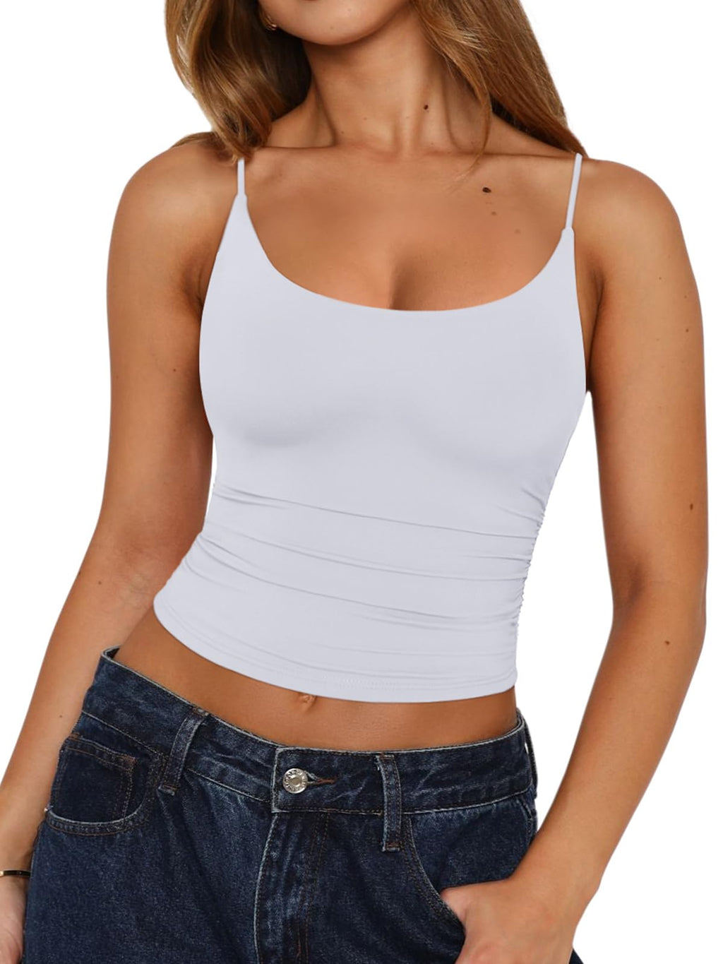 - 🌸Slim Fit & Comfortable Design: Adjustable spaghetti straps cute crop tops, ruched waist detailing to show off your curves, stylish square neckline and chic backless design to bring subtle seduction