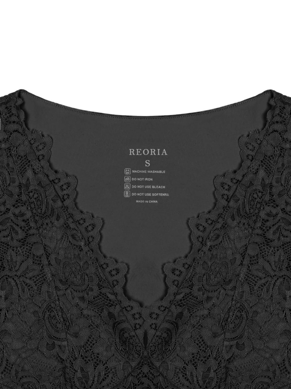 - 🌸Beautiful lace trim and sexy plunge V-neck, highlight your sexy and charming collarbone and cleavage. Double lined can going out without a bra but holds your girls in place so well.