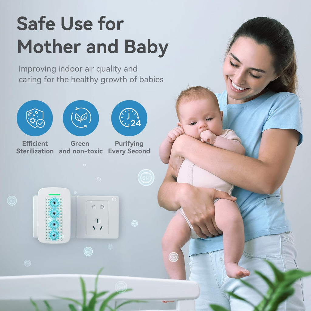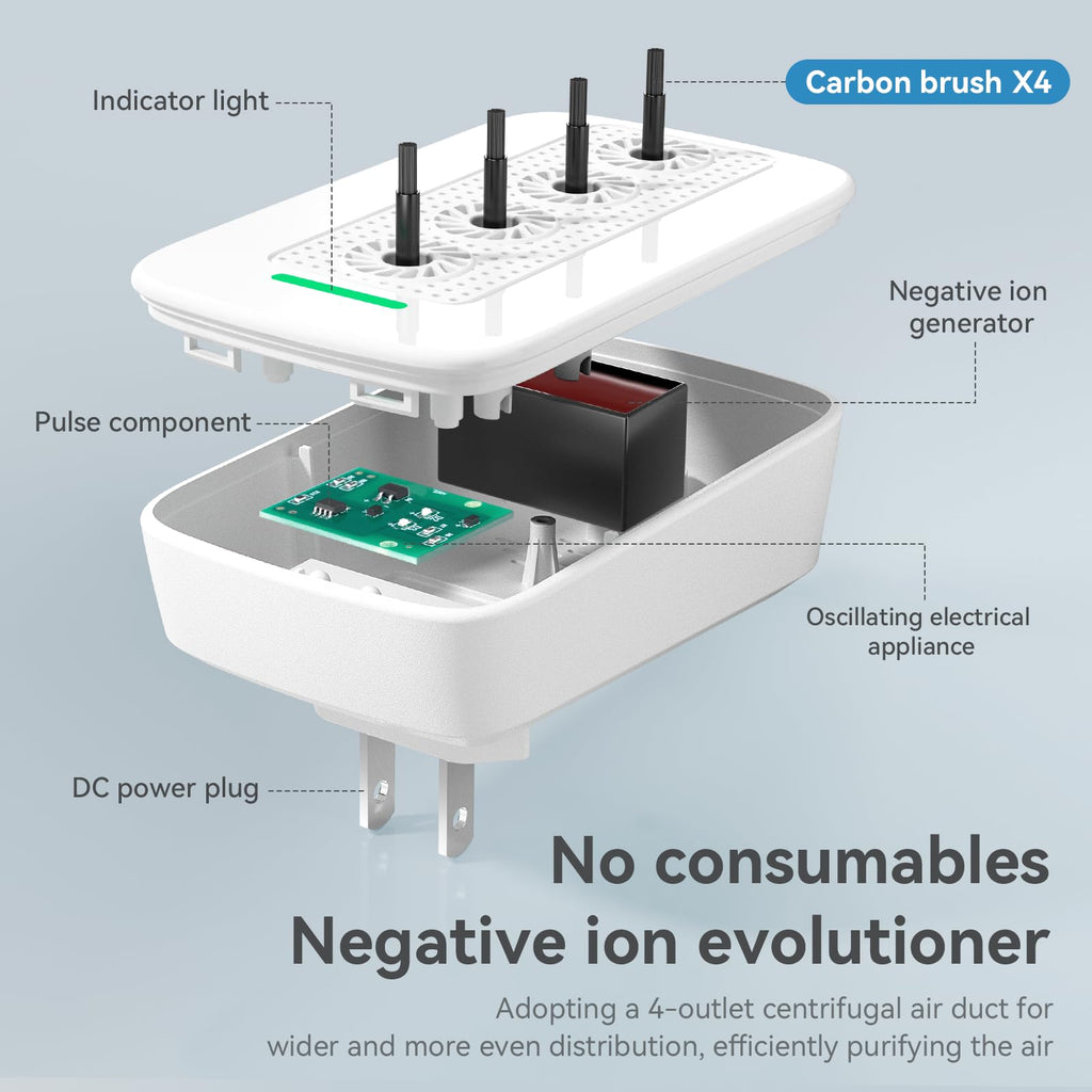- Simple Plug-and-Use Design. Just plug this compact ionizer into any standard outlet, and it starts purifying the air right away. No extra setup or bulky machines required, making it ideal for bedrooms, kitchens, bathrooms, or while traveling