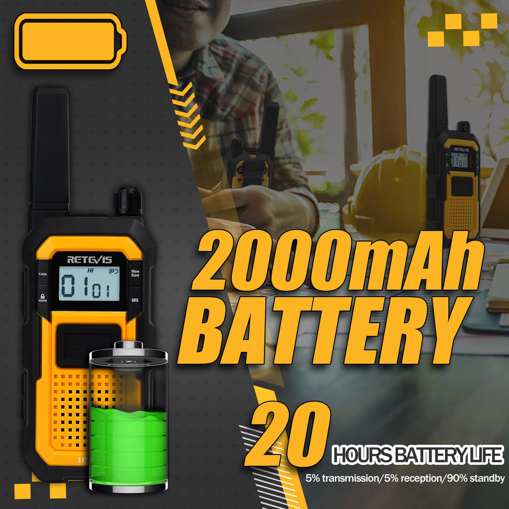 - 【Rechargeable Two Way Radio】2000mAh lithium battery provides about 20-hours continuous use; support dual charging dock and USB-C charging