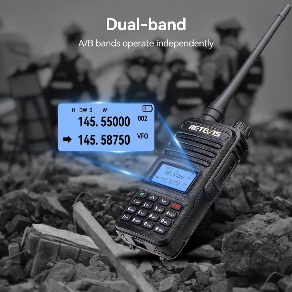 - Dual-band amateur walkie-talkie; dual-band; A/B bands operate independently, and can display and answer calls on two channels at the same time; allowing two teams to talk at the same time without affecting each other; convenient for the team