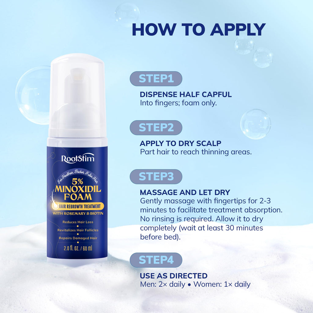 - Lightweight Foam Technology — Quick-drying, non-greasy formula designed for easy application to the scalp without residue or build-up.