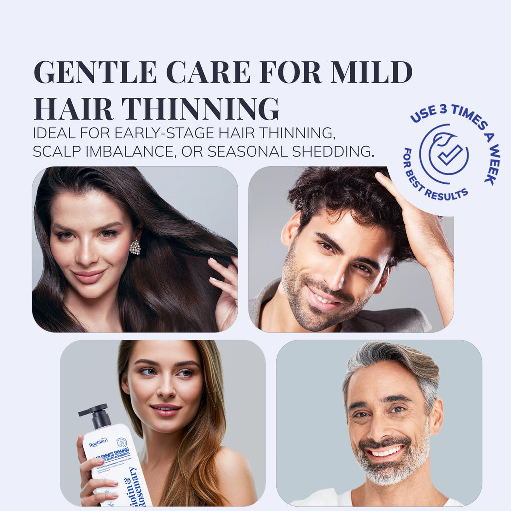 - HAIR CARE WITH NUTRIENT RICH INGREDIENTS: RootStim Hair Regrowth Shampoo is uniquely formulated with Biotin and Rosemary, enriched with Aloe Vera, Ginger Root, Tea Tree Oil, He Shou Wu, Argan Oil, Saw Palmetto and Caffeine. These natural ingredients are gentle, effective and free from harmful chemicals and are suitable for all hair types, especially thin, soft and damaged hair