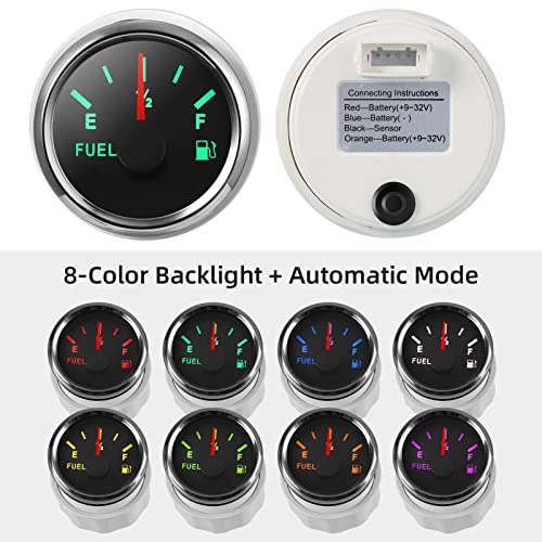 - [Easy to Read]: The fuel level gauge has 8 adjustable backlight colors, IP67 waterproof, stainless steel frame, anti-fog curved glass, easy to read (Empty-1/2-Full).