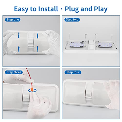 - EASY INSTALLATION - Camper lights come with 2 wires without polarity, paired with 2 wire nuts and 16 screws for directly fixing, convenient for installing the rv interior lights on any flat and smooth surface of your RV