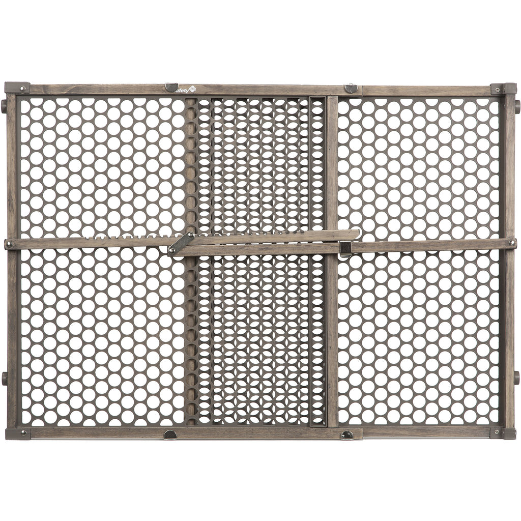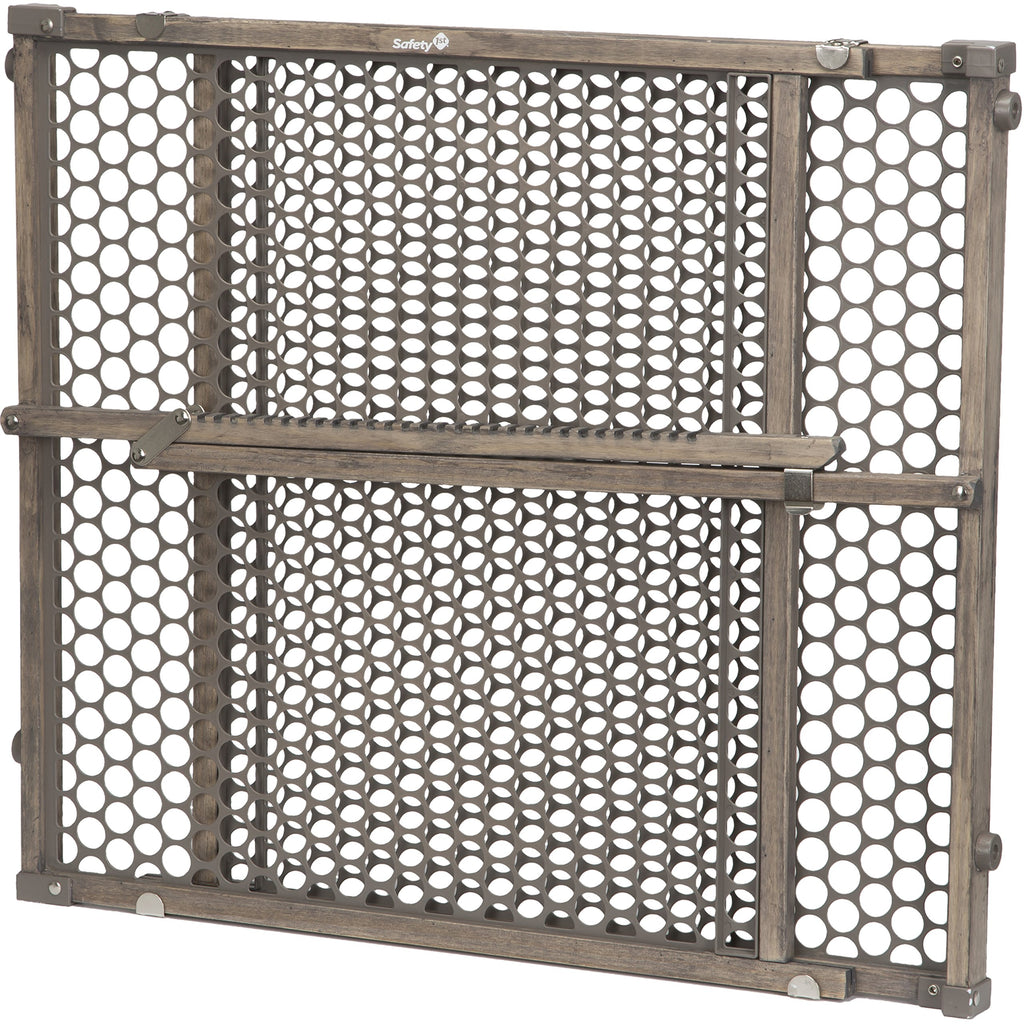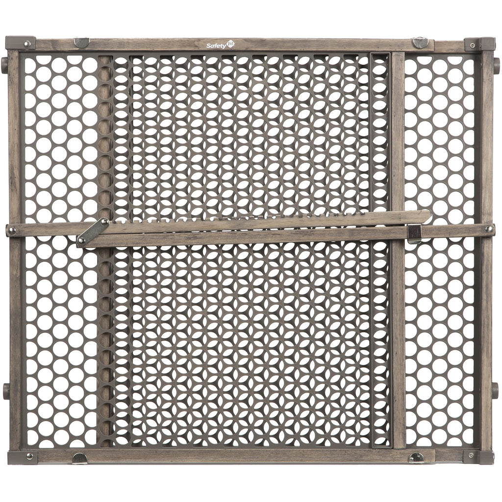 - This attractive wooden gate from Safety 1st has an understated, vintage style, and can be adjusted to fit doorways and openings ranging from 28 to 42 inches wide.