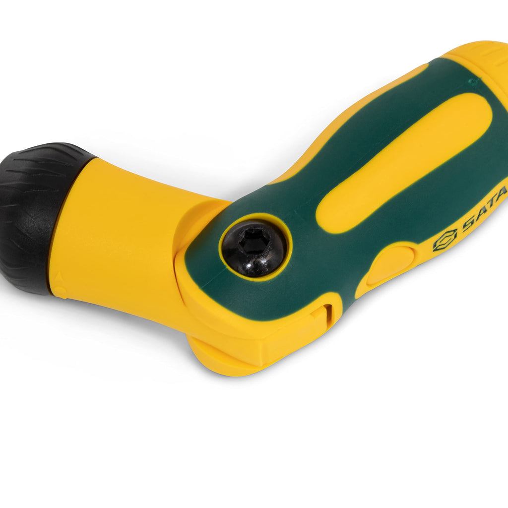 Details: SATA 6-Piece Folding Ratcheting Screwdriver Set : WORK QUICKLY: Ratcheting function for speed when fastening, TORQUE:Foldable handle allows for higher torque, COMFORT: Ergonomic dual material helps reduce fatigue and improve grip and torque, MULTI-USE: Removable cap for 6-bit storage