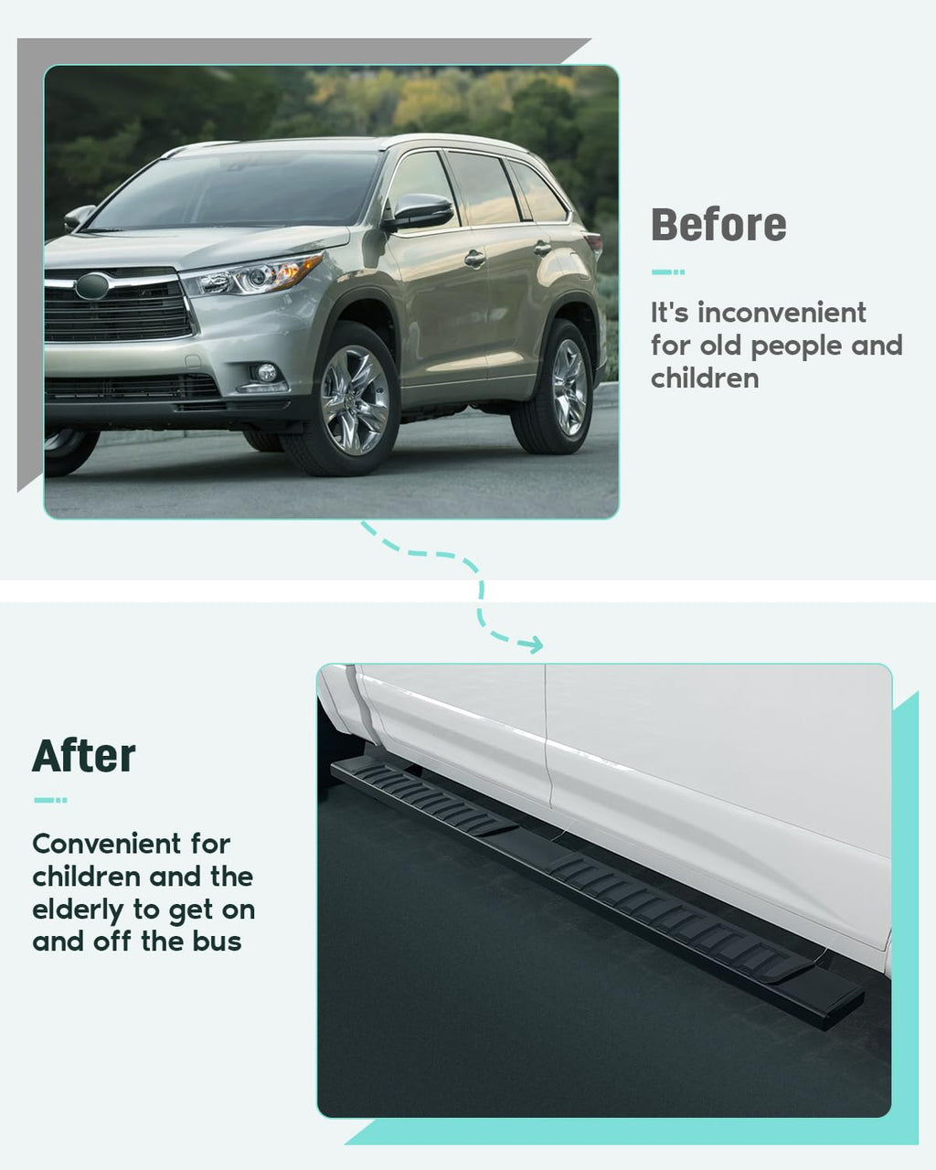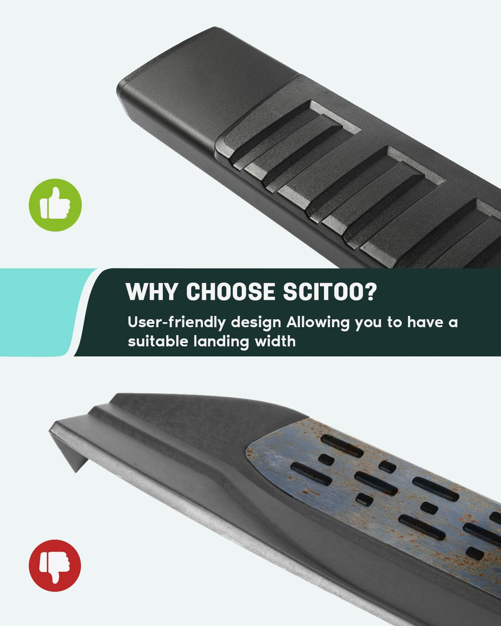 - { RUNNING BOARD ADVANTAGE } - SCITOO step bars can preserve your car's paintwork, add your own style to the exterior of your car, and help improve the driving experience for people with mobility issues.