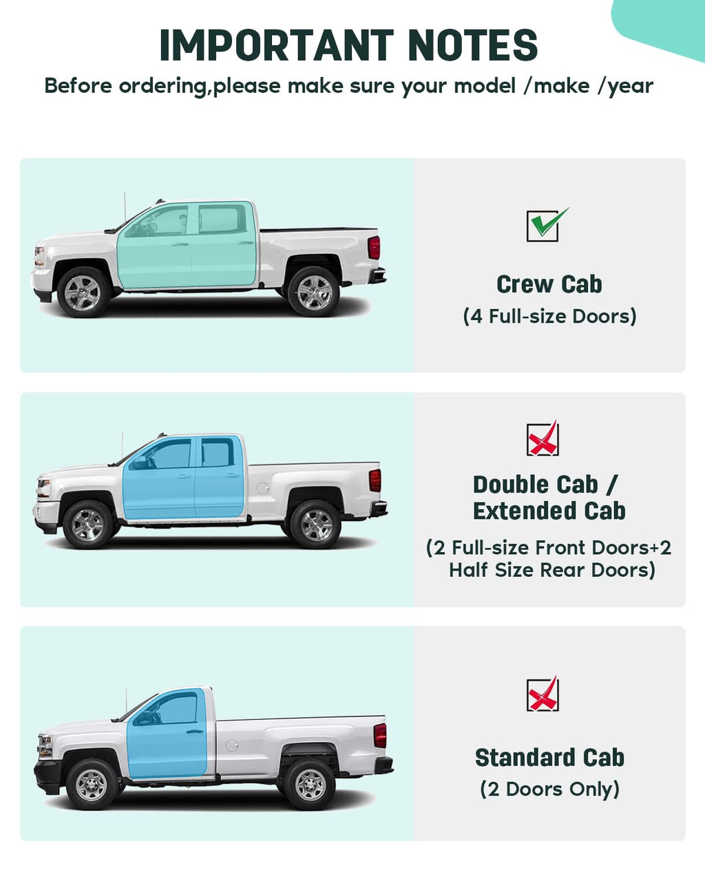 - { FITMENT } - Please check the Cab Size picture before ordering. This running board side step fits for 2009-2010 for Dodge Ram 1500, 2010 for Dodge Ram 2500, 2010 for Dodge Ram 3500, 2011-2018 for Ram 1500, 2019-2023 for Ram 1500 Classic, 2011-2022 for Ram 2500, 2011-2022 for Ram 3500, Not for double cab regular cab and Super Cab with 2 full-size front doors and 2 shortened rear doors.