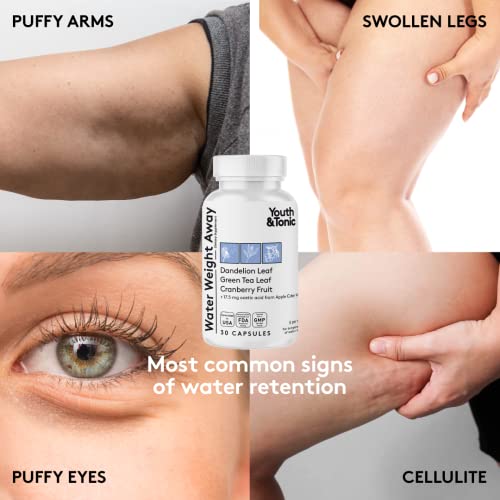 - [ Water Weight Away 30 pills for PUFFINESS ]: For excess water retention in legs feet arms ankles or for puffy eyes & swollen face | Contains apple cider vinegar, green tea, dandelion & potassium and other ingredients having a diuretic effect