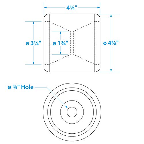 - Roller measures 4-1/4 inches deep x 4-1/4 inches wide, with 3/4 inch diameter hole