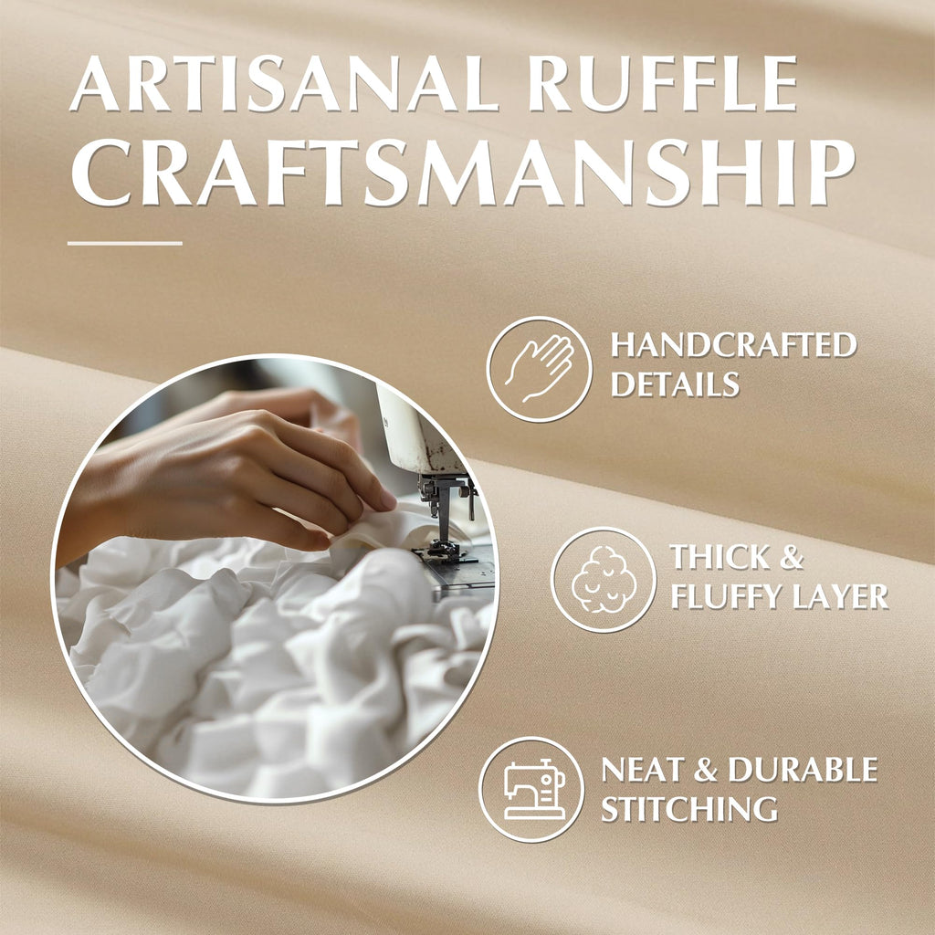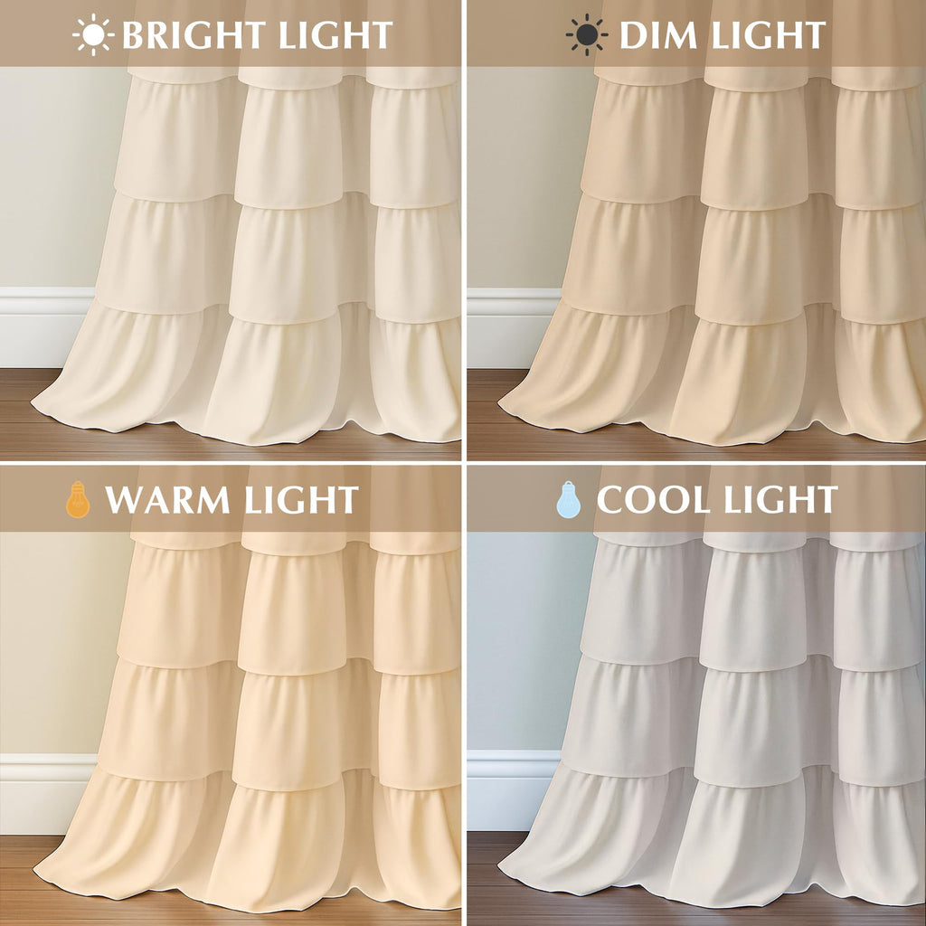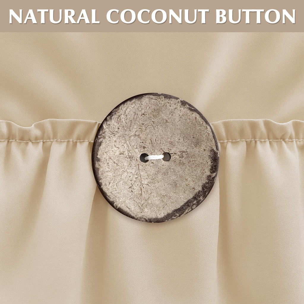 - Farmhouse Charm with Vintage Elegance:Enhance your home decor with this beige farmhouse curtains, designed with a perfect balance of rustic charm and cozy elegance. Featuring a unique two-piece design, these curtains combine a simple single-layer top with a beautifully ruffled bottom, accented by hand-sewn coconut buttons for a classic farmhouse touch.