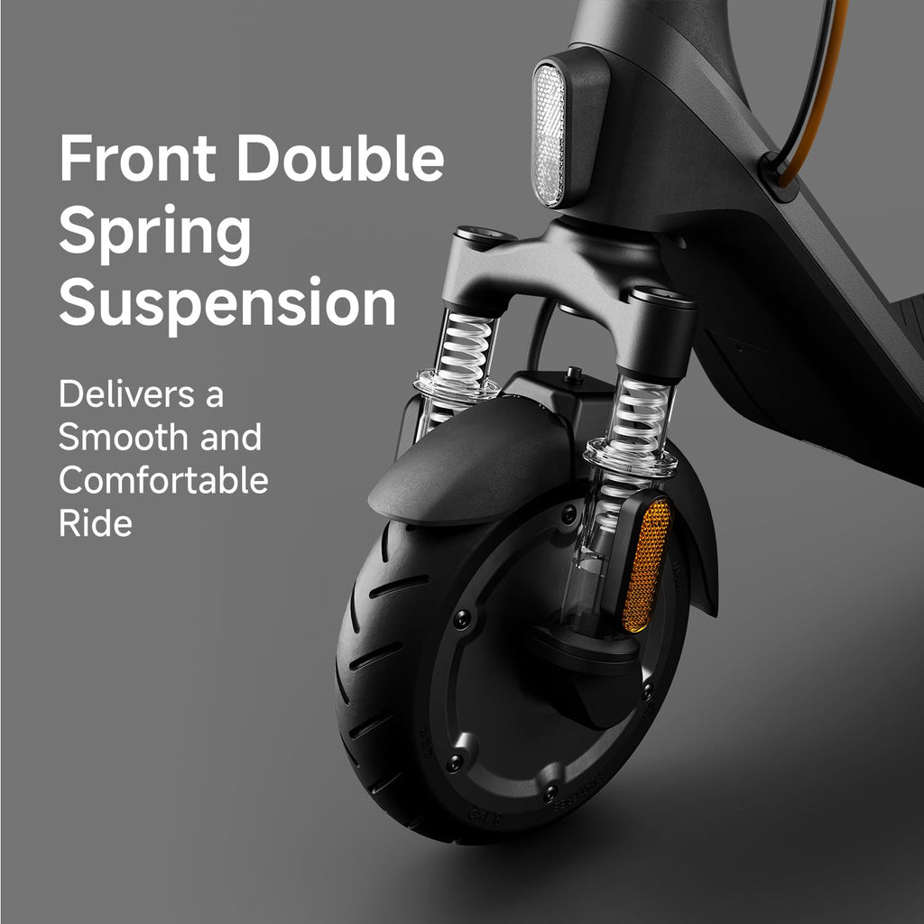 Up to 16 Miles Long Range - Ride farther with a powerful 220Wh battery and smart energy management system. Max Speed 15.5 MPH - Quick and stable cruising for city commutes and weekend rides. Beginner-Friendly Controls - Intuitive handlebar throttle and easy-to-read 2.8" LED dashboard for effortless riding. Front Double Spring Suspension - Smooth out bumps for a more comfortable and stable journey. 8.1" Shock-Absorbing Tires - Designed to handle everyday city roads with reduced vibration. Dual Brake System - Reliable stopping power for safer riding in any condition. Fast Charging - Fully recharges in approx. 7.5 hours for more time riding and less time waiting. UL2271 & UL2272 Certified - Tested and certified for battery and electrical safety for total peace of mind.