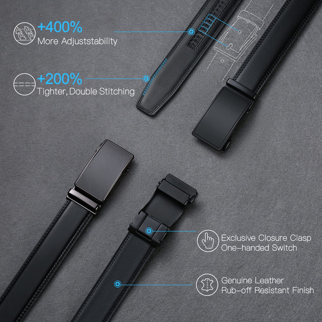 - 【A Nice Gift】Nothing feels great than receiving a nice gift box packing, from our brand or from your loved ones. Heavy gift box, carefully wrapped, spacious design, solid construction... These make our belts a magnificent gift idea for men on anniversaries, Valentine's Day, Father's Day, Thanksgiving, Christmas, and other special occasions.