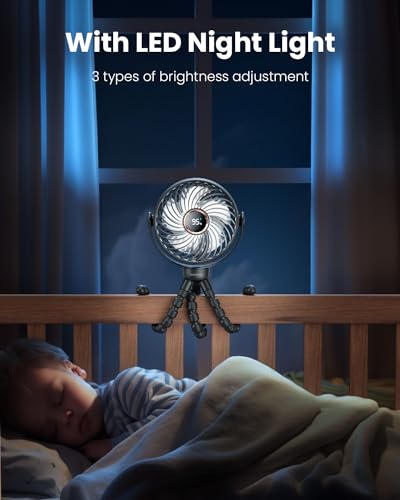 - LED Display & Night Light: The stroller fan features an LED display showing the operating gear and remaining power. Additionally, the mini fan includes a 3-level brightness night light