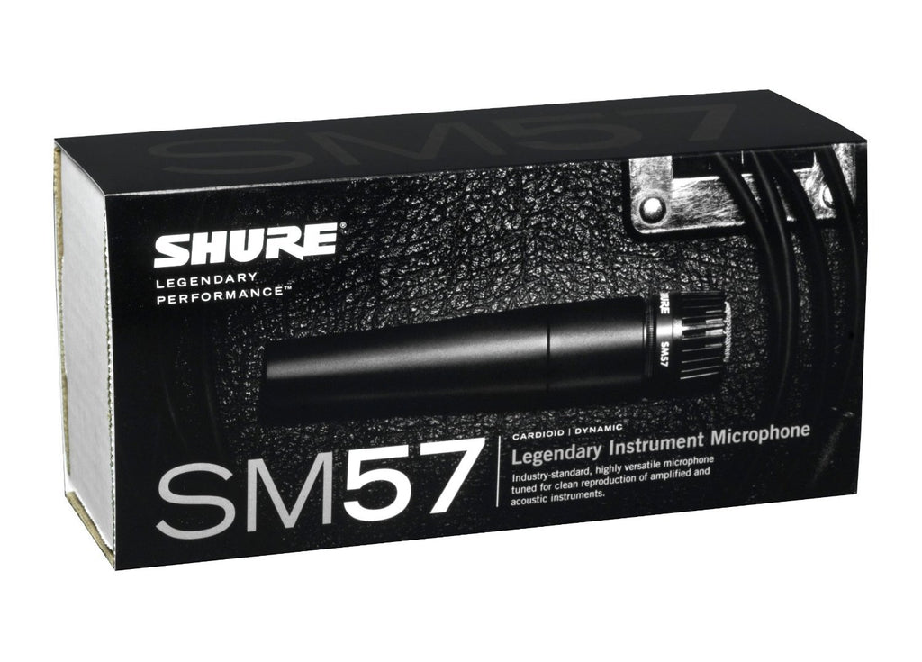 - Everything you need to start playing straight out of the box! Bundle includes Shure SM57-LC Instrument/Vocal Microphone, Mic Boom Stand, XLR Cable