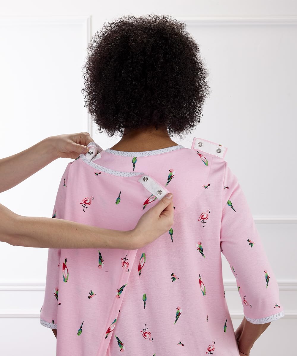 - ADAPTIVE FIT: This adaptive clothing for women elderly is perfect for anyone suffering from decreased movement, especially from weakness in the upper arms. We've added shoulder snaps, designed so our womens hospital gowns avoid pressure points.