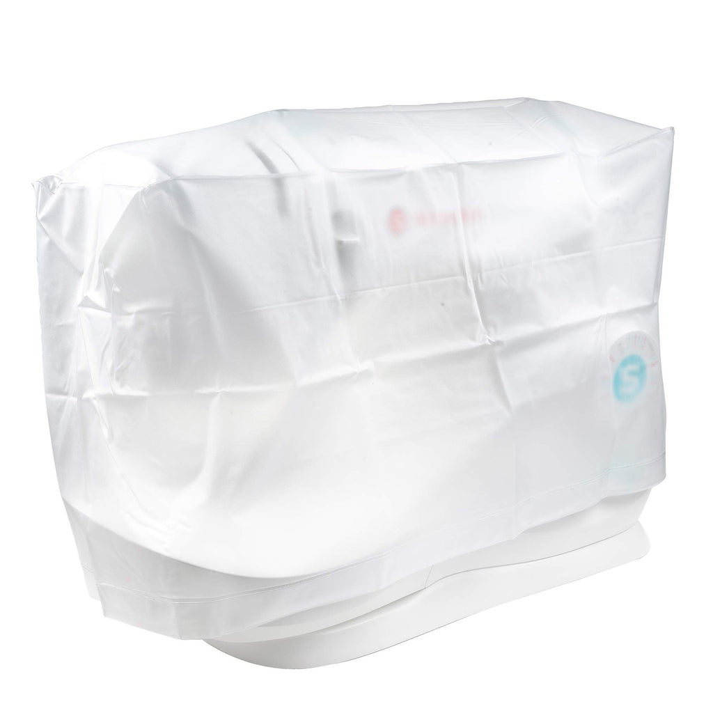 - Includes: full size vinyl cover; needle threader with magnifier; lint brush with needle inserter and a machine needle organizer