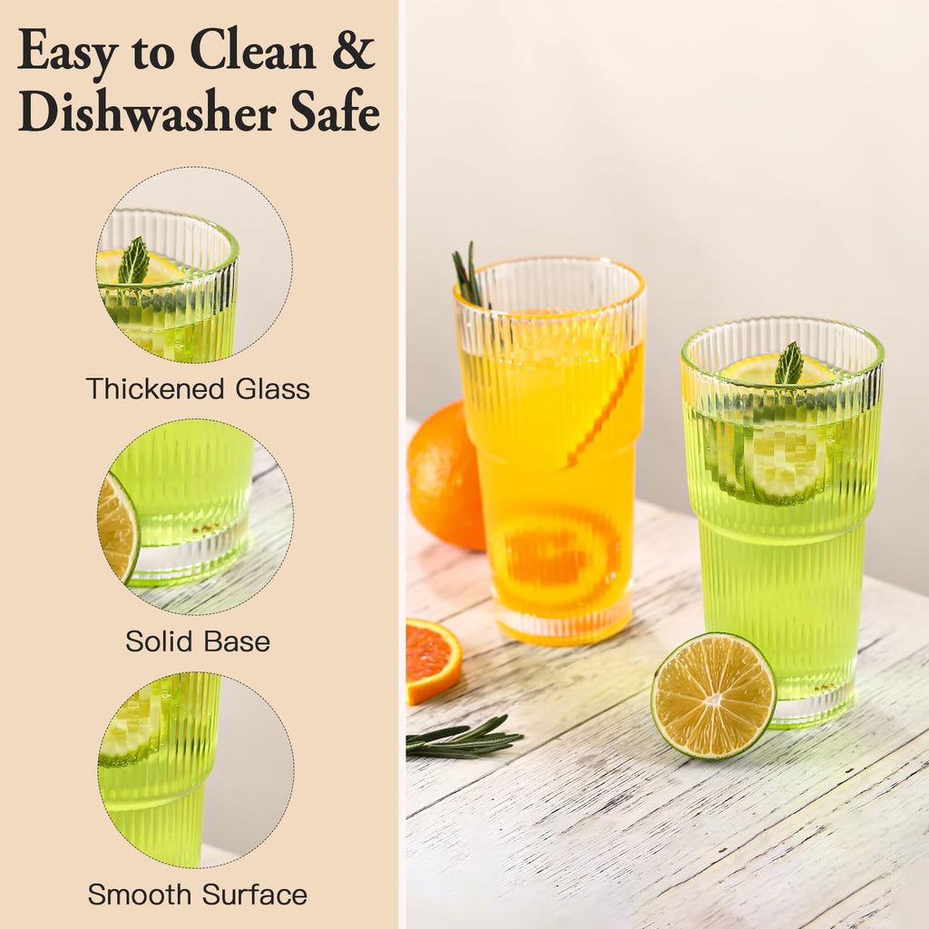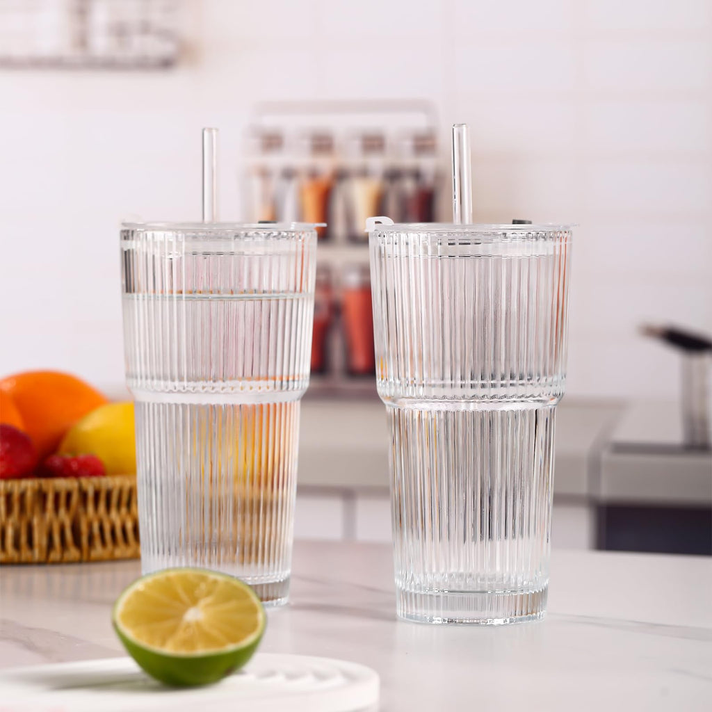- Vintage Ribbed Design – Classic & Practical: Unique ribbed glass texture provides a comfortable grip and adds a stylish vintage touch.Crystal-clear glass enhances the beauty of your drinks, perfect for iced coffee, cocktails, boba tea, and more.