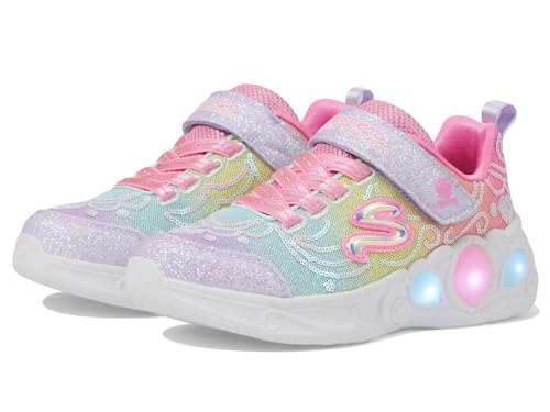 Light up your steps with royally cute style in Skechers Princess Wishes. This sporty princess themed design features a glittery mesh and sequin embellished upper with stretch laces, an instep strap, cushioned comfort insole and a lighted midsole.