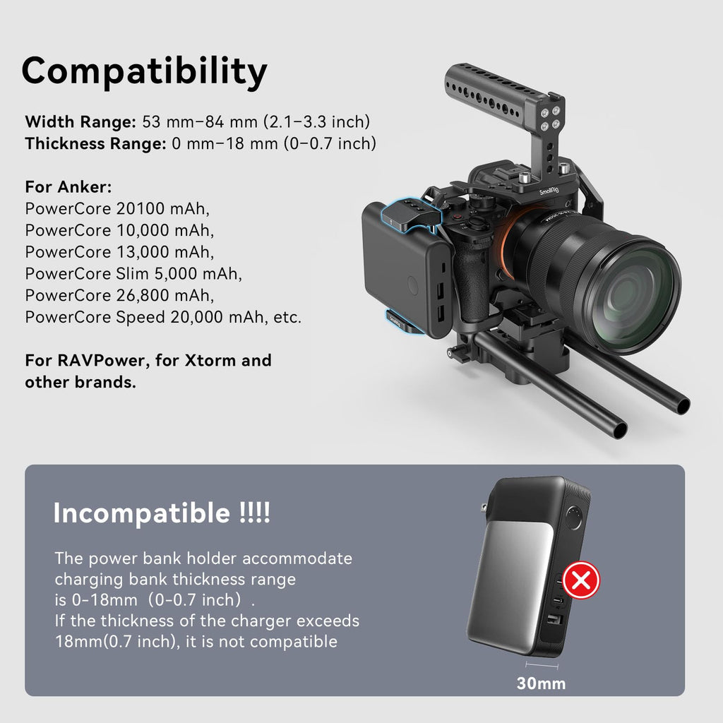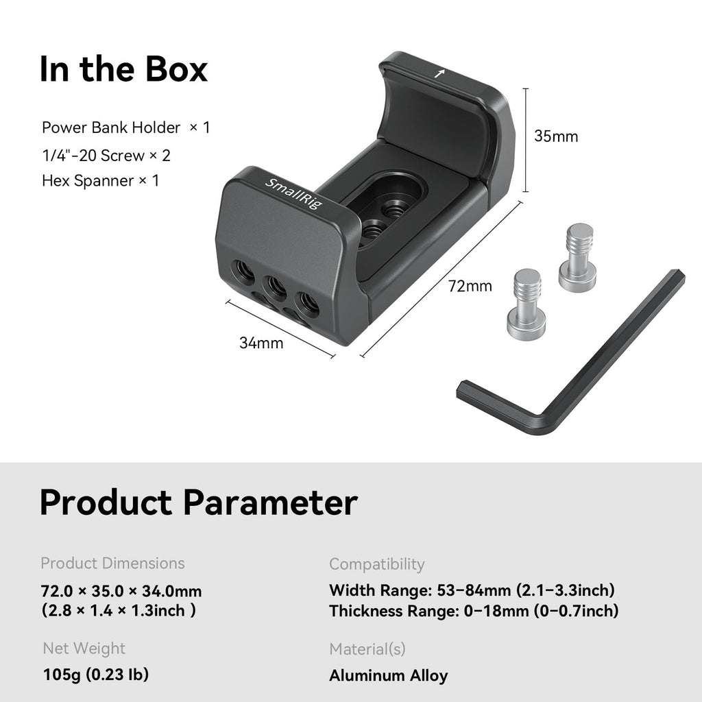 - 【FOR POWER BANK】 SMALLRIG Holder BUB2336 is designed for portable power banks, it could attaches a power bank to the camera rig when a sustainable charging solution is required.