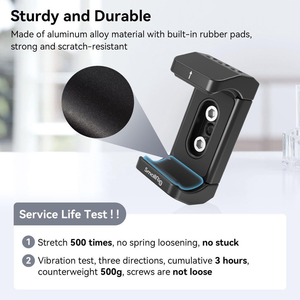 - 【MOUNTING POINTS】 On the top, bottom and back of the holder, there are multiple 1/4” threaded holes for connect with other accessories, such as SMALLRIG Top Handle 1638, SMALLRIG Dual Rod Clamp 942, SMALLRIG Magic Arm 2070 or SMALLRIG cages.