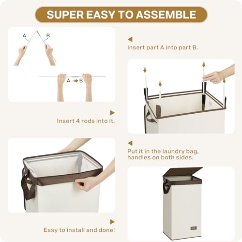 - 【Sturdy Structureand Not Deformed】 The 4 insert rods of the hamper is thicker and stronger, and the MDF panel is added at the bottom, a metal frame is embedded in the top to form a solid structure of the clothes basket. It will not collapse or deform after long-term use and remains rigid even when the hamper basket is filled.