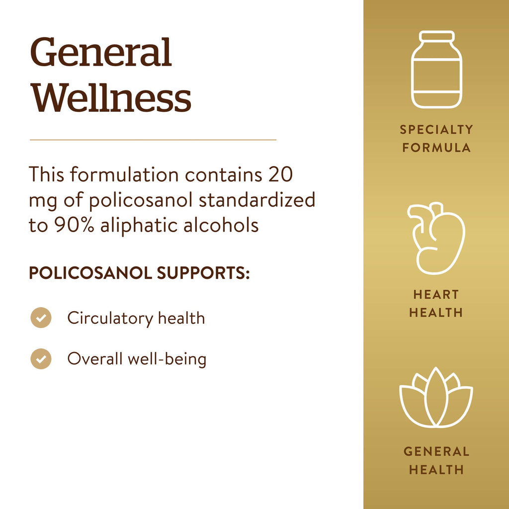 - PREMIUM-QUALITY: Policosanol 20 mg vegetable capsules is one of Solgar’s premium-quality products developed to promote general wellness