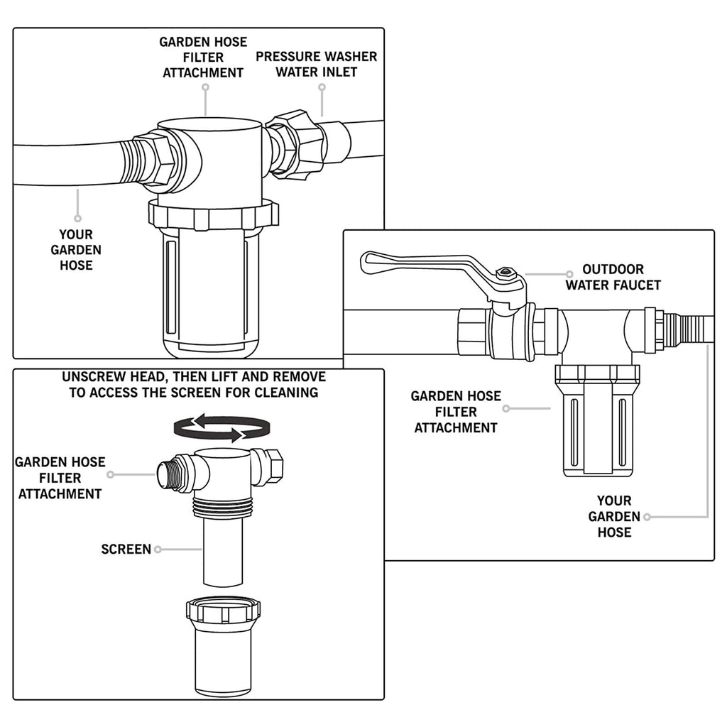 - ❤【Easy to apply】The home must filter water deposits or debris from the casing into the garden hose to prevent damage to the high pressure washer pump.