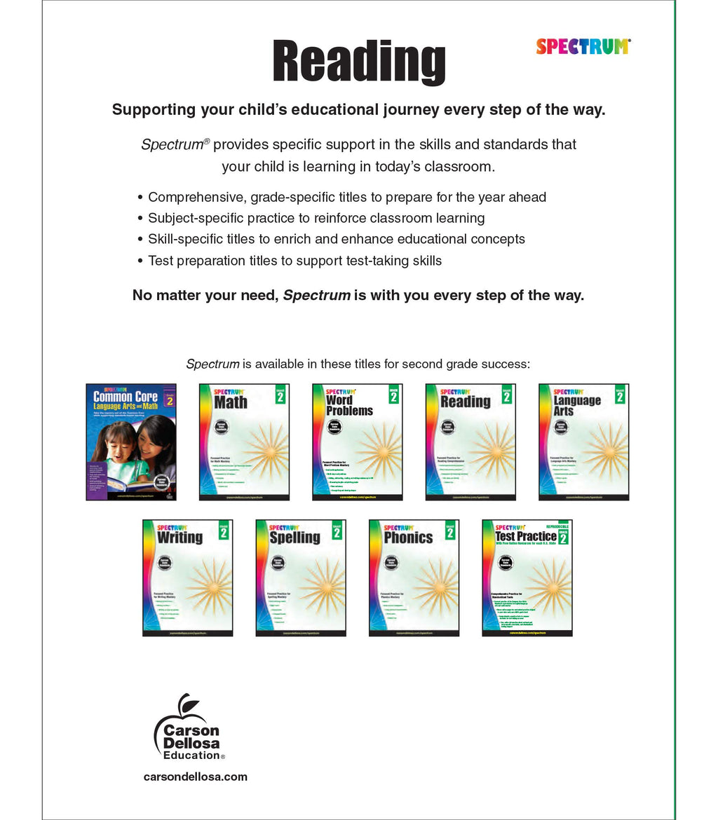 - Spectrum Reading for Grade 2 includes focused practice for reading comprehension