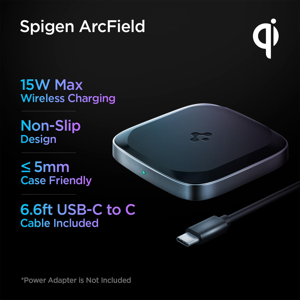 - What's in the Box: Spigen ArcField 15W Max Wireless Charger, USB-C to USB-C Charging Cable (6.6ft), Welcome guide, 24-Month Warranty, Friendly Customer Service (Adapter Not Included).