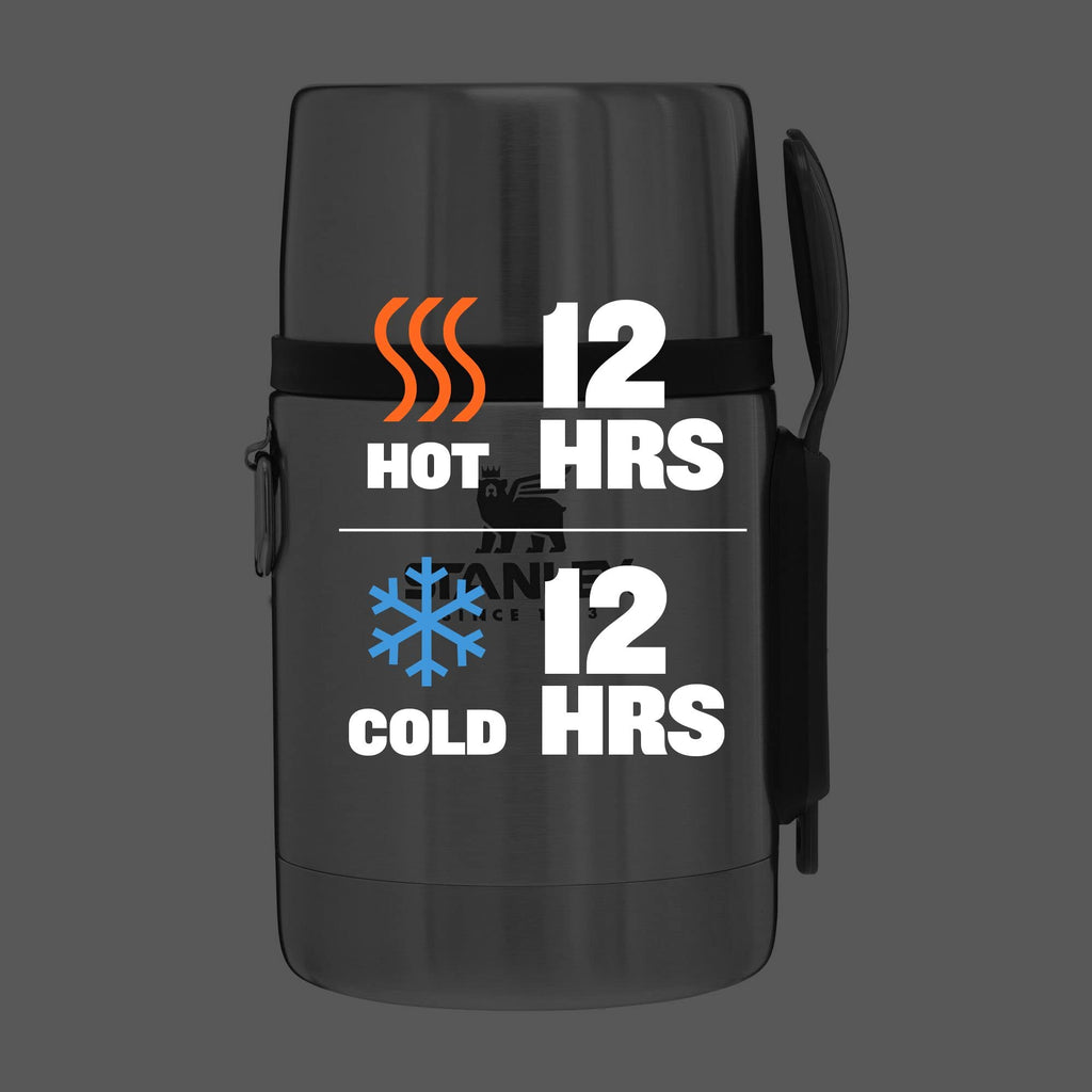 - LEGENDARY STANLEY INSULATION: Each food jar with integrated steel spork has double-wall vacuum insulation for excellent temperature retention. Double-wall vacuum insulation technology will keep your food hot or cold for up to 12 hours.